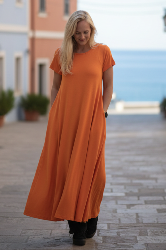 Ballerina Dress är en av våra mest populära klänningar. Med otrolig stretch passar klänningen de flesta kroppstyper och är mycket bekväm att bära. Tyget har en härlig tyngd vilket gör att klänningen faller vackert. Med fickor och en perfekt längd är detta den perfekta klänningen för många olika tillfällen.