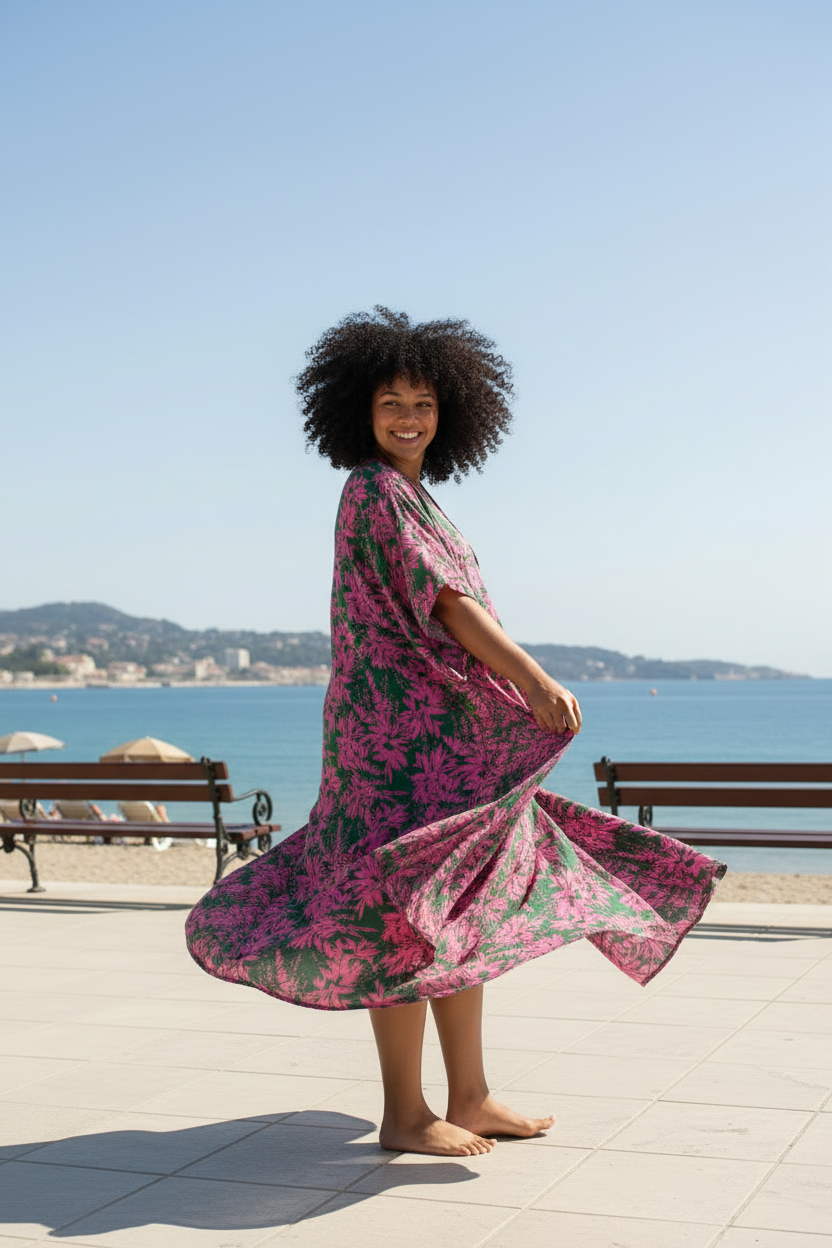 Das superelegante Flower Sea Dress – ein neues Lieblingsstück von Hängmatta! Entdecken Sie unser locker sitzendes und wunderbar fließendes Kaftankleid mit durchgehender Knopfleiste auf der Vorderseite. Ein stilvolles und schönes Kleidungsstück, das als Kleid, Kimono oder etwas dazwischen getragen werden kann. Perfekt als Strandkleid, aber auch stylisch genug, um es zu abendlichen Festivitäten zu tragen. Passt perfekt mit einem Gürtel in der Taille! Hergestellt aus 100 % weicher Viskose für maximalen Komfort.