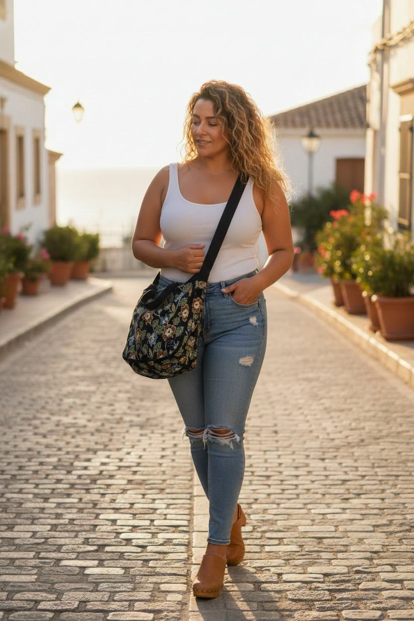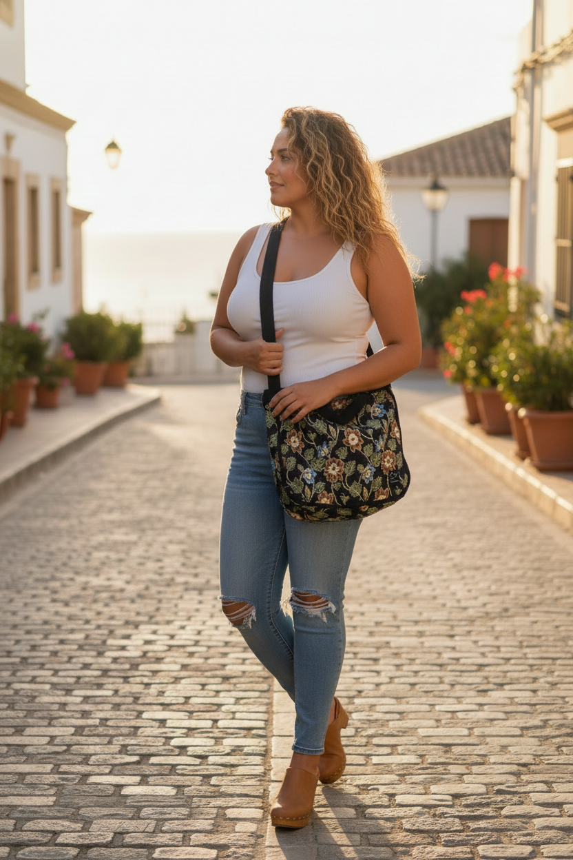 Een ruime en praktische tas van duurzaam materiaal met een prachtig patroon.