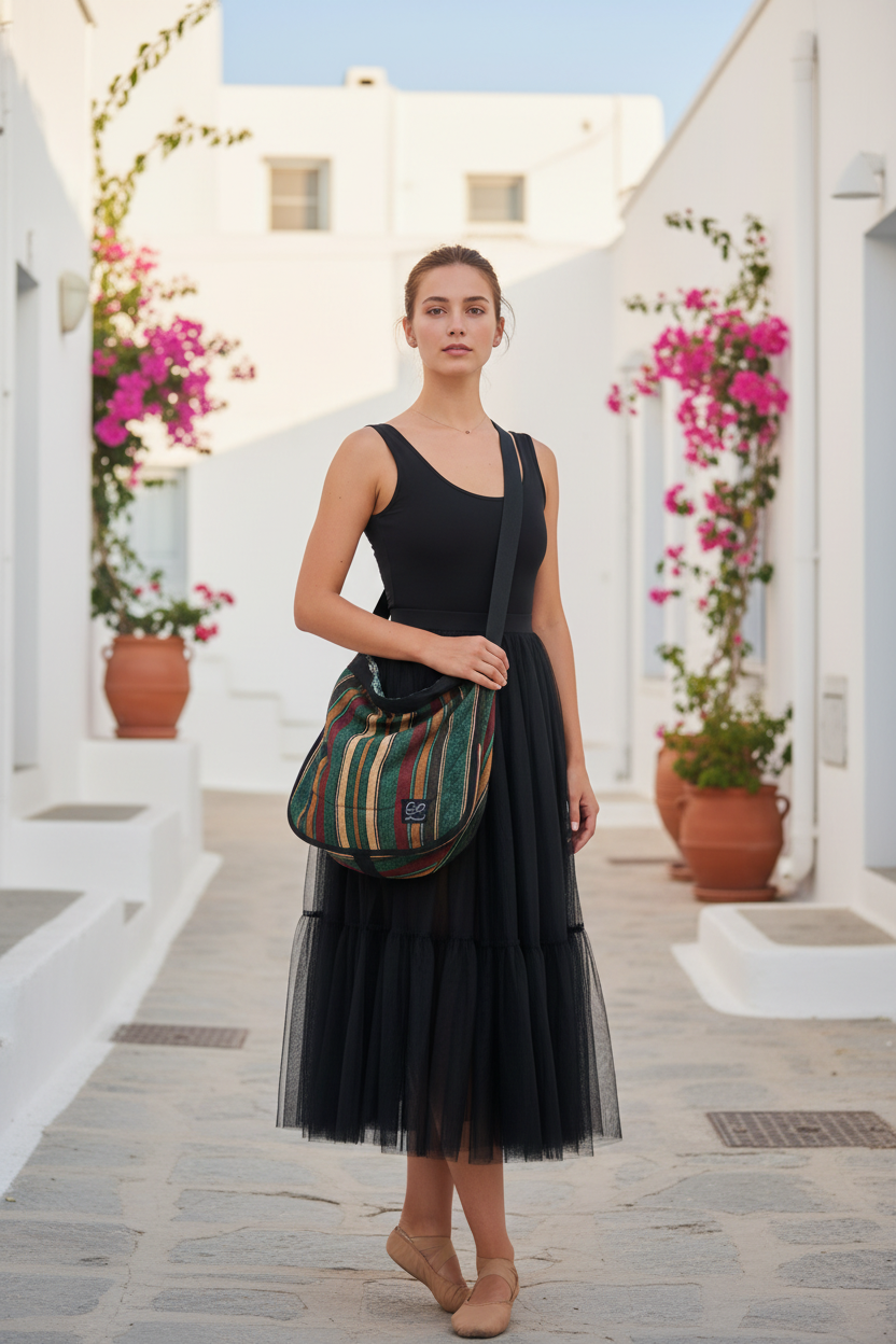 Een ruime en praktische tas van duurzaam materiaal met een prachtig patroon.