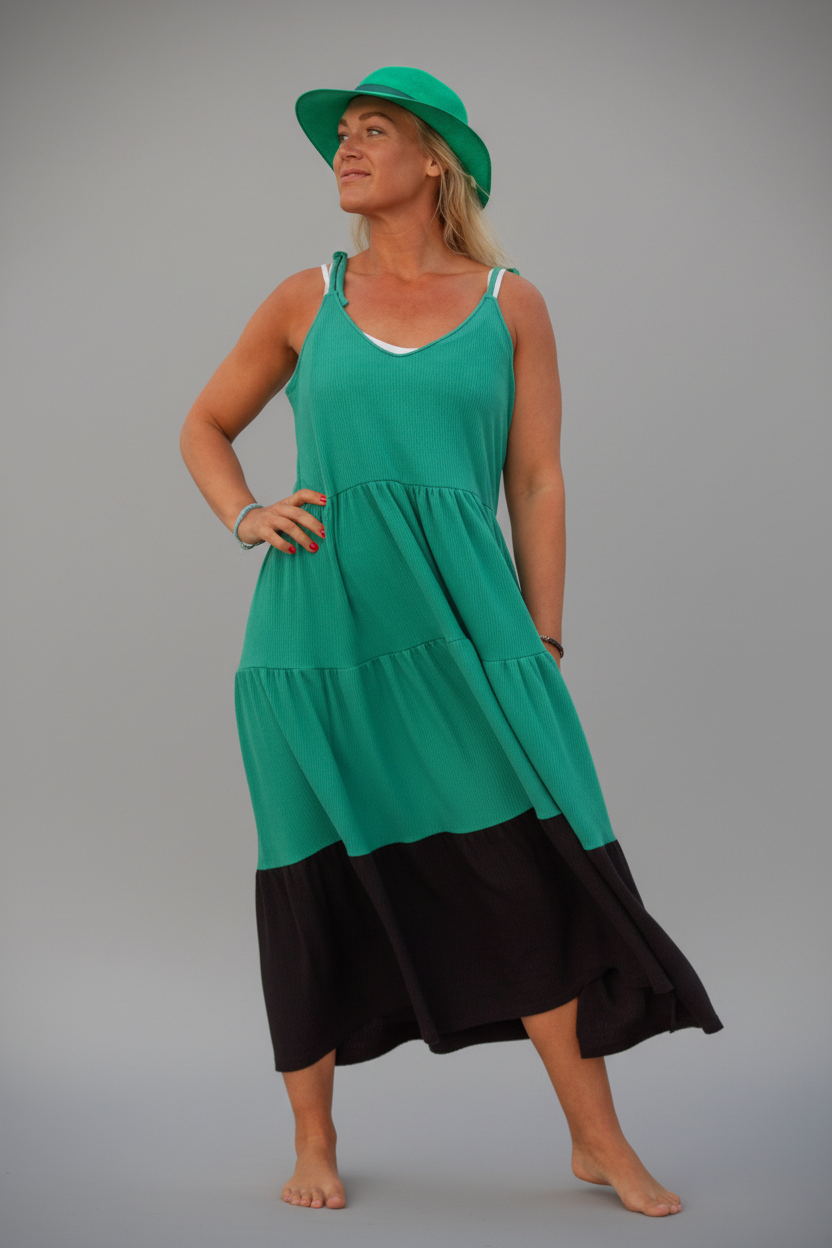 Grønn og svart kjole Solby Grønn og svart