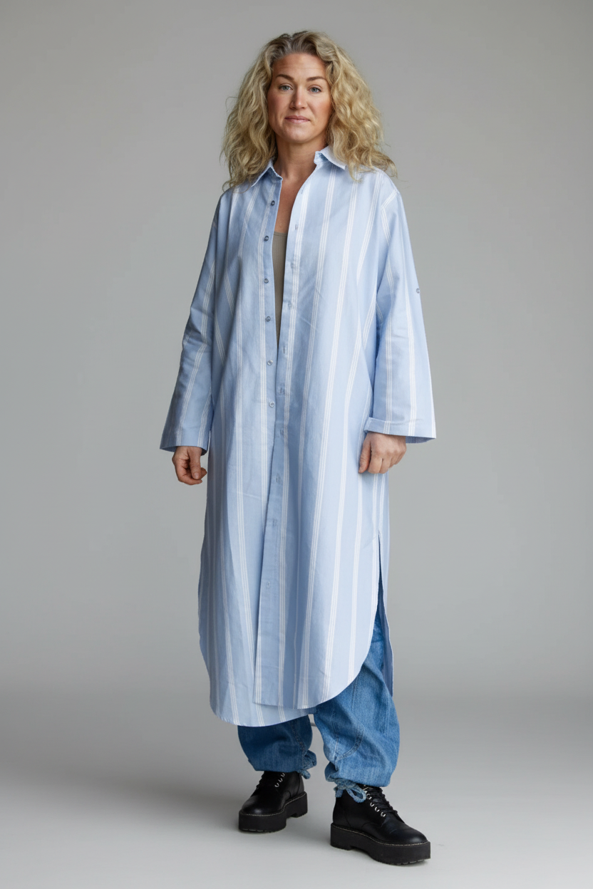 En fantastisk deilig skjorte i oppkvikkende farger! Fint materiale og perfekt lengde. Kan brukes både som kjole og skjorte.
