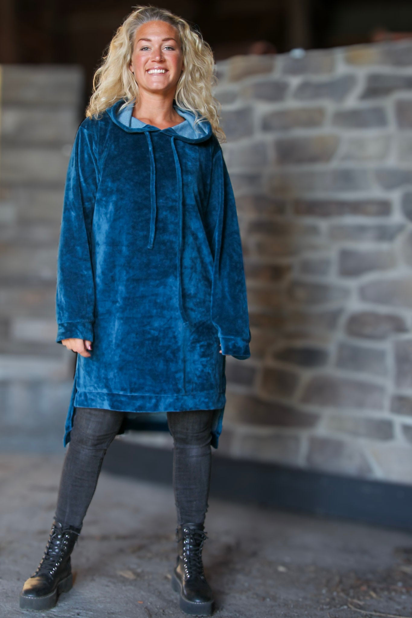 Den vidunderligt komfortable Long Hoodie Dress er den ultimative kombination af komfort og stil. Den lange hættekjole er lavet i et utroligt blødt og strækbart bomuldsstof med velourfølelse. Med forlænget ryg og slidser i siden får du maksimal bevægelsesfrihed. Vi har selvfølgelig udstyret kjolen med praktiske lommer!