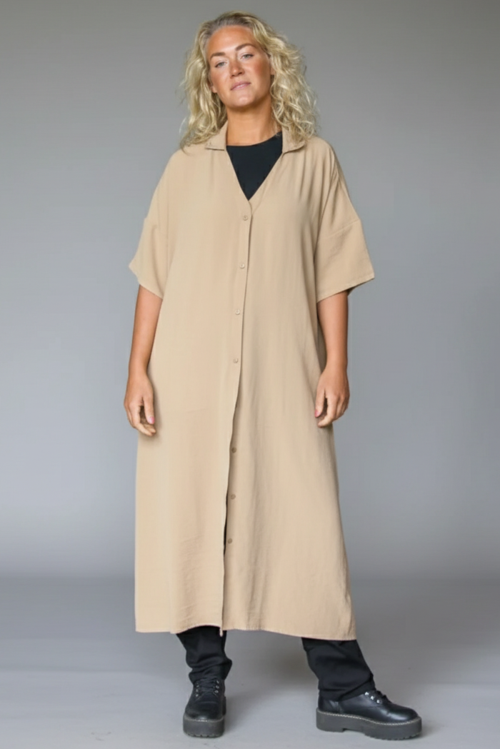 Sahara Long Shirt är en fantastisk produkt som du både kan använda som klänning eller längre skjorta - öppen eller stängd. Lätt, skönt tyg och fickor. En prefekt skjortklänning helt enkelt tillverkad av 100% återvunnen polyester.