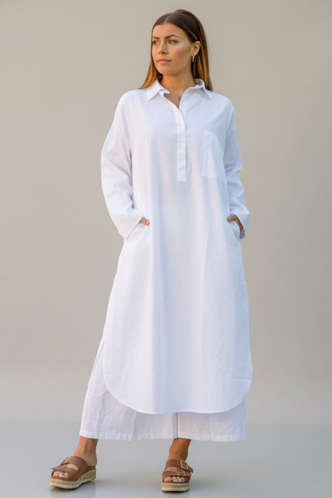 En skjortklänning att bo i! Tillverkad av skönt och mjukt material med fickor, mycket rymlig design, knappar framtill och designad i Sverige.