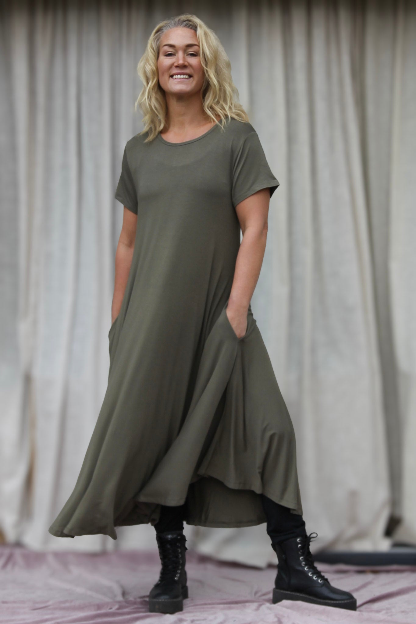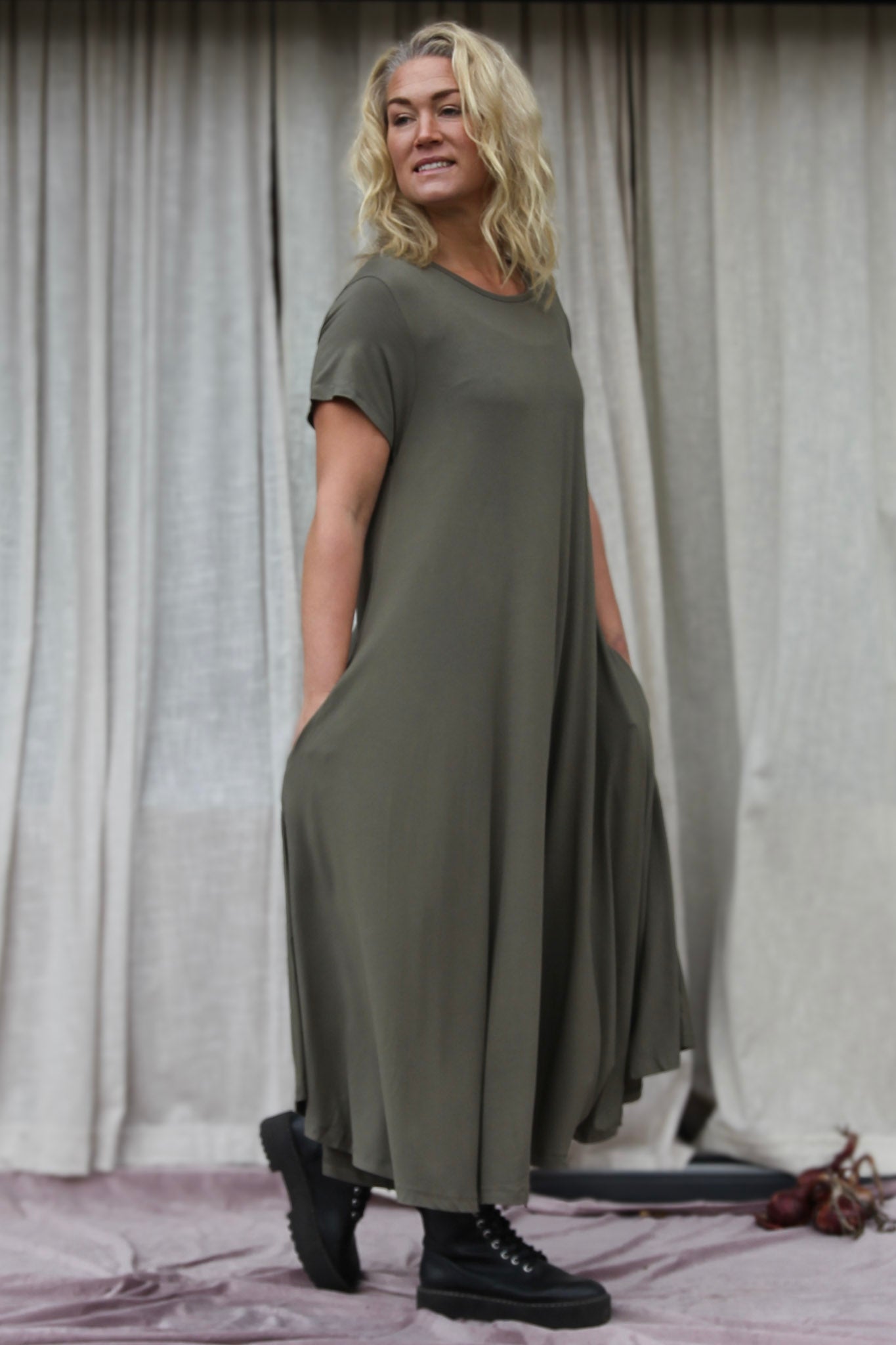 Ballerina Dress är en av våra mest populära klänningar. Med otrolig stretch passar klänningen de flesta kroppstyper och är mycket bekväm att bära. Tyget har en härlig tyngd vilket gör att klänningen faller vackert. Med fickor och en perfekt längd är detta den perfekta klänningen för många olika tillfällen.