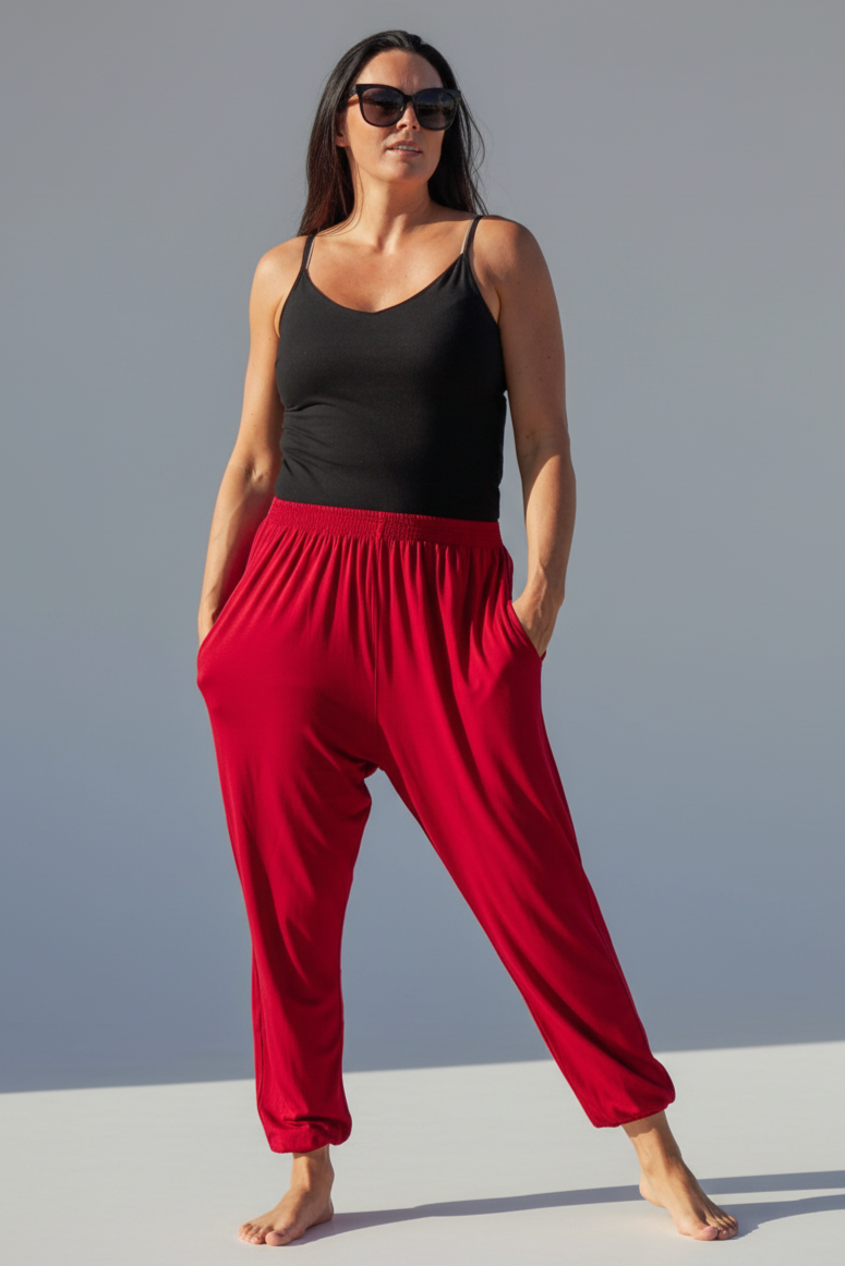 Härliga mysbyxor i vårt underbara viscose material med supermycket stretch. Byxorna har fickor och mjuk resår i midjan. Pockety är en av våra absoluta favoritmodeller! En perfekt byxa att glida runt i både hemma och på stan.