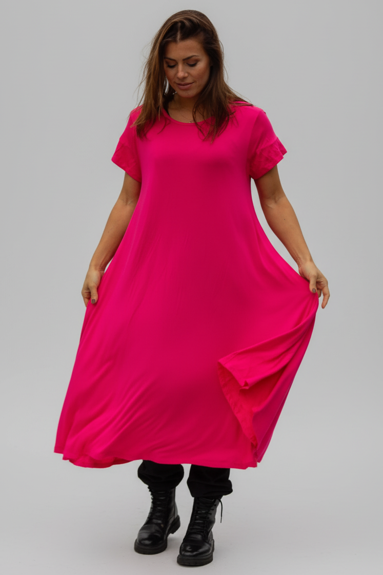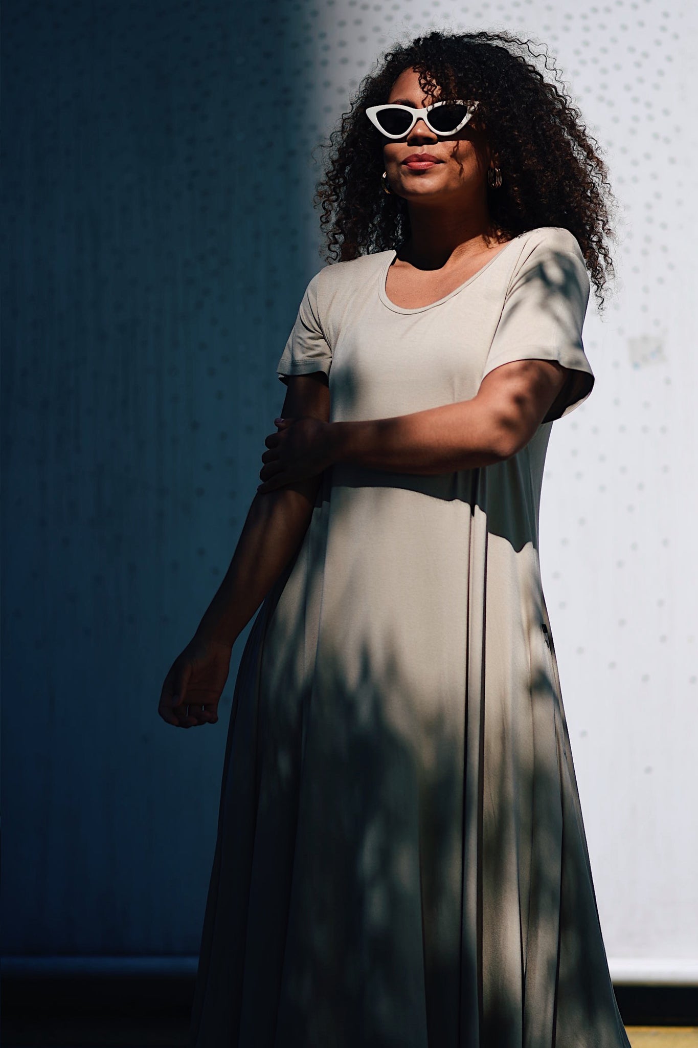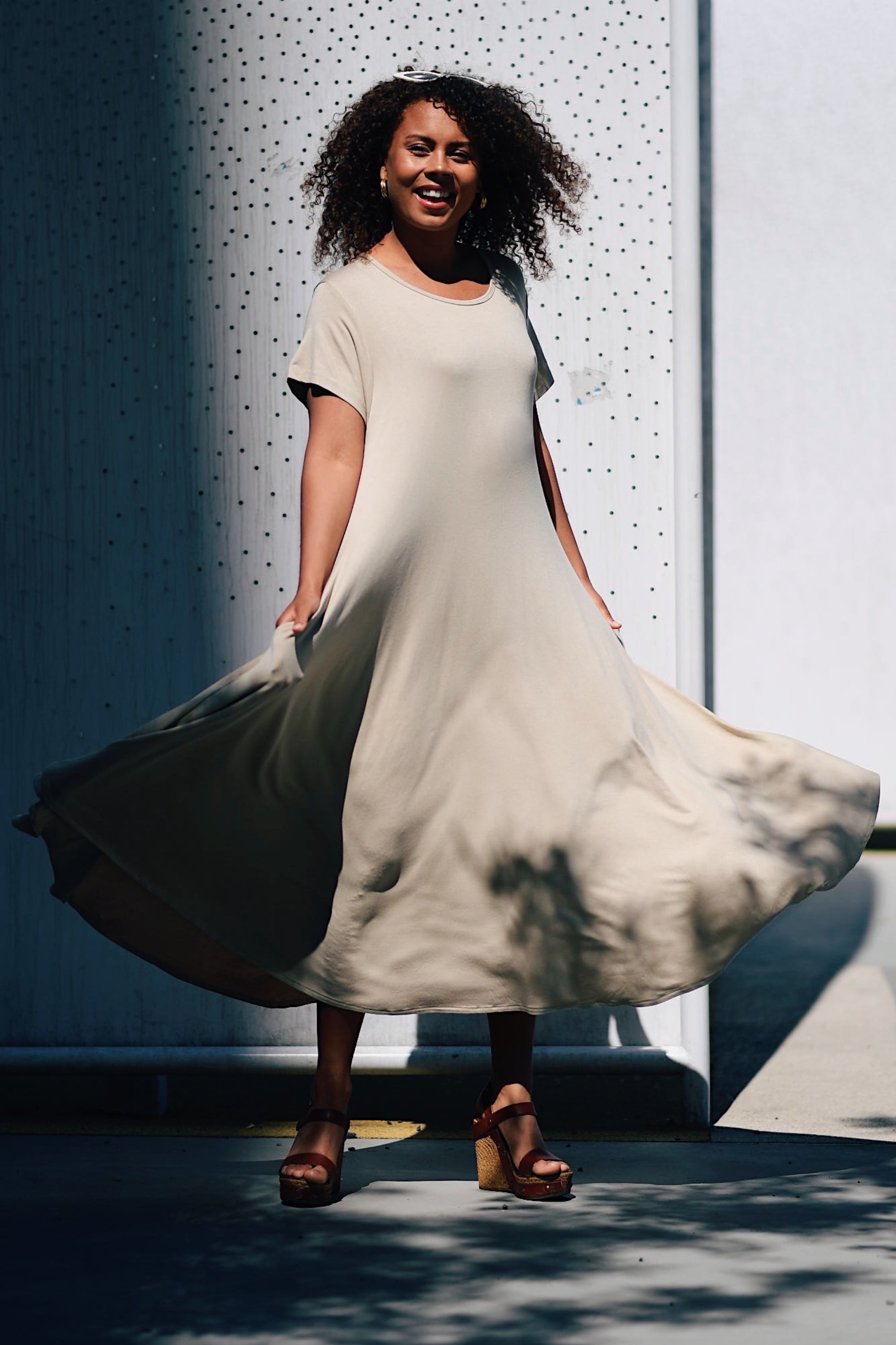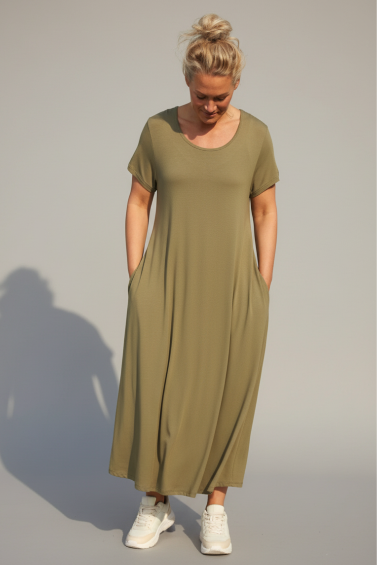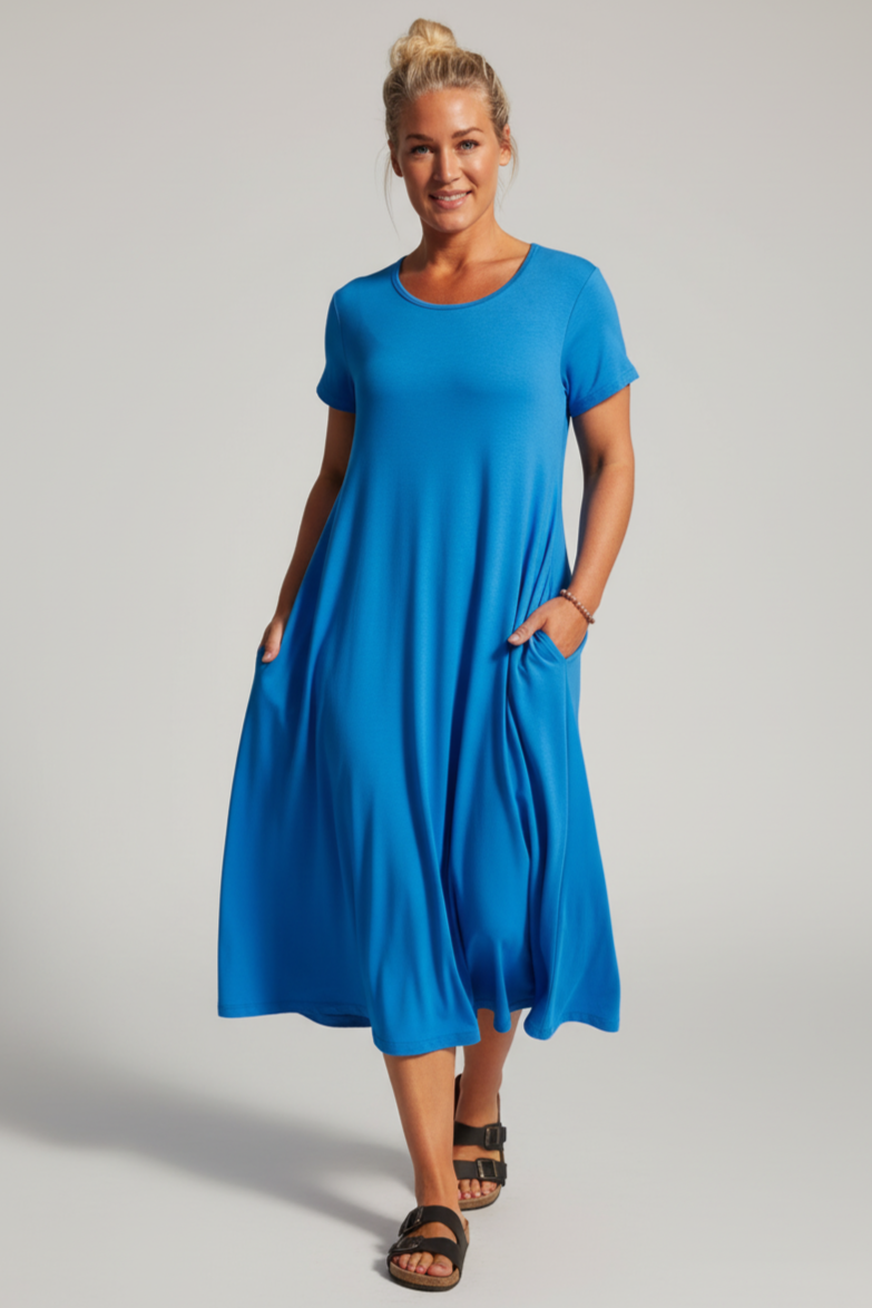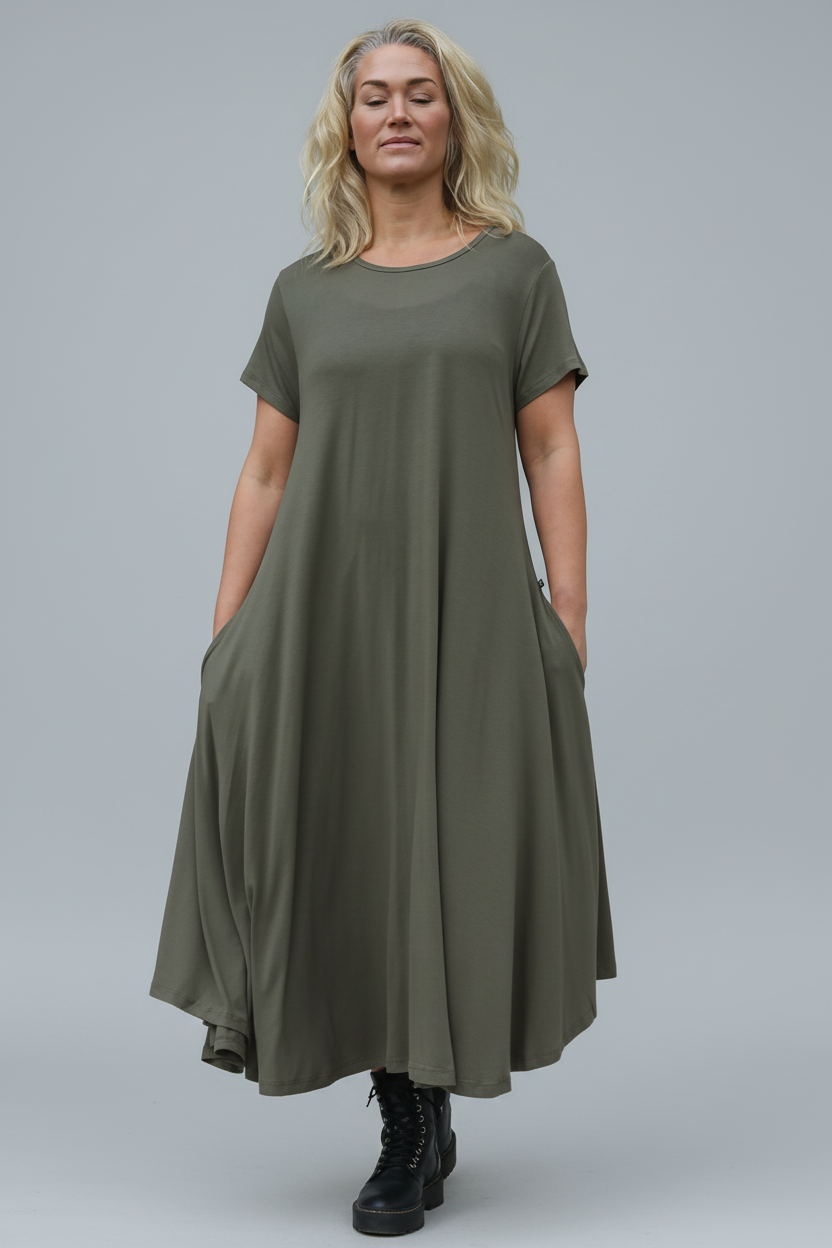 Ballerina Dress är en av våra mest populära klänningar. Med otrolig stretch passar klänningen de flesta kroppstyper och är mycket bekväm att bära. Tyget har en härlig tyngd vilket gör att klänningen faller vackert. Med fickor och en perfekt längd är detta den perfekta klänningen för många olika tillfällen.