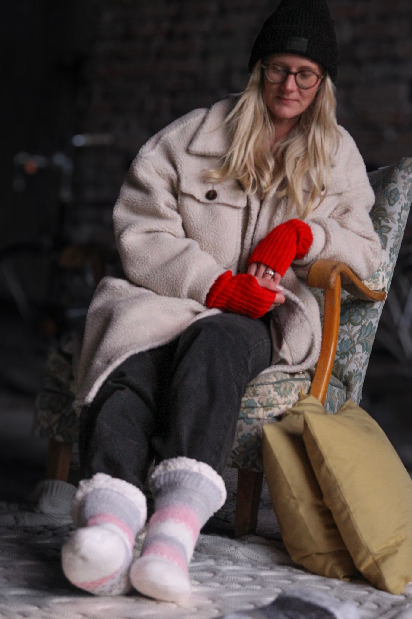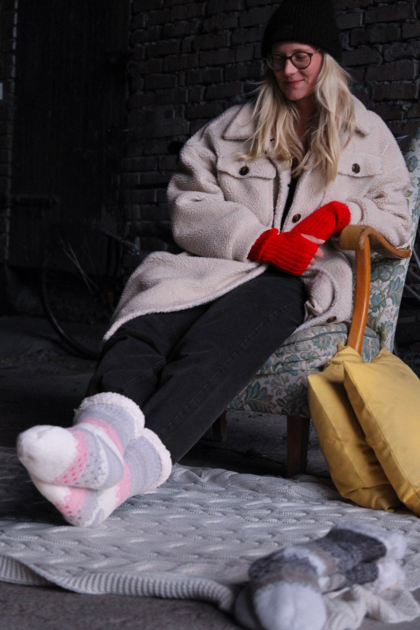 Våra härliga julstrumpor är här! Med fluffigt mjukt material på insidan och stickad utsida. Strumporna är otroligt sköna och flexibla för att passa de flesta.