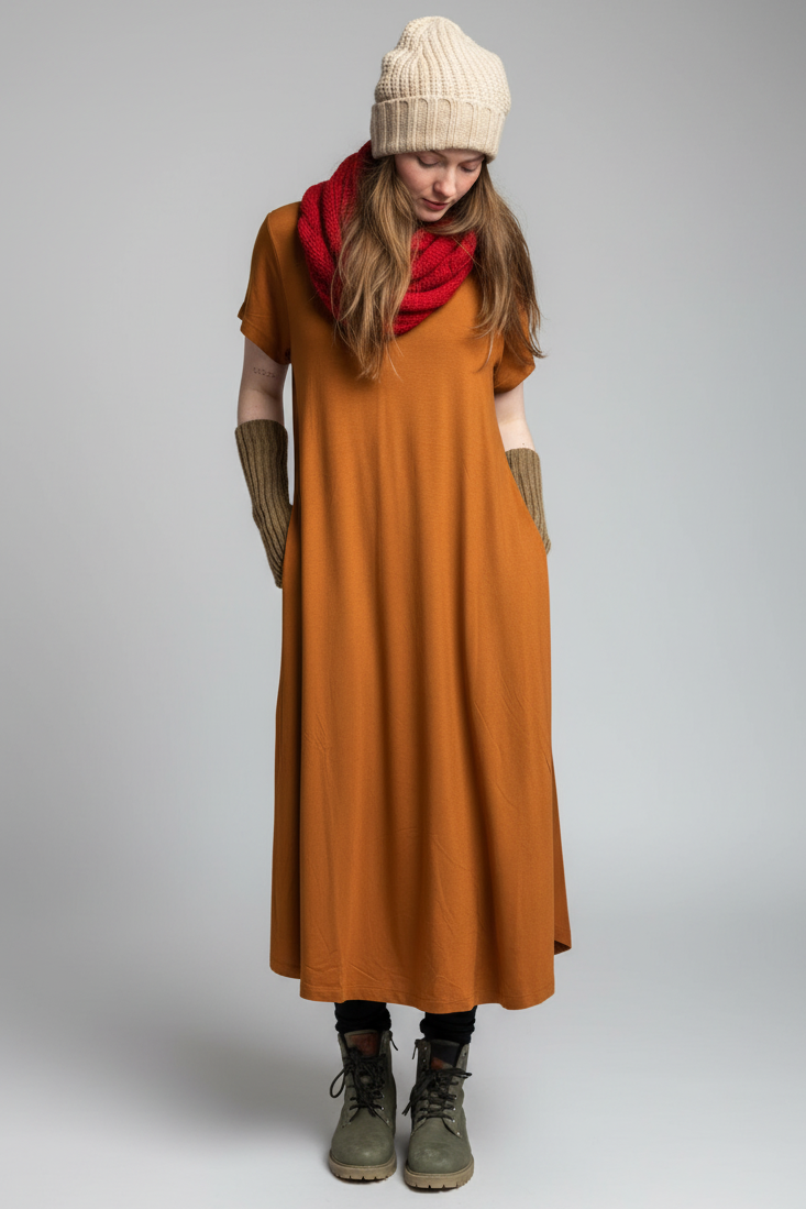 Ballerina Dress är en av våra mest populära klänningar. Med otrolig stretch passar klänningen de flesta kroppstyper och är mycket bekväm att bära. Tyget har en härlig tyngd vilket gör att klänningen faller vackert. Med fickor och en perfekt längd är detta den perfekta klänningen för många olika tillfällen.